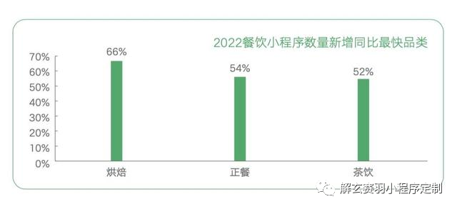 随着数字化技术的不断发展,餐饮品牌将加速数字化转型,小程序成为越来越多行业开展线上经营的重要工具。依托小程序等工具自主开发数字化经营平台,已经成为餐饮行业的趋势。在餐饮行业,2022年活跃小程序数量同比增长40%,其中烘焙、正餐、茶饮为餐饮小程序中数量同比新增最快的品类。通过小程序下单的全年交易金额同比增长41%,尤其在咖啡茶饮头部商户中,来自小程序的订单超过6成。