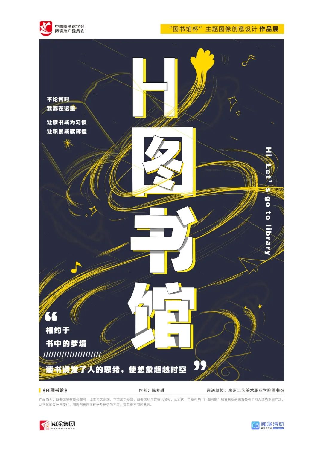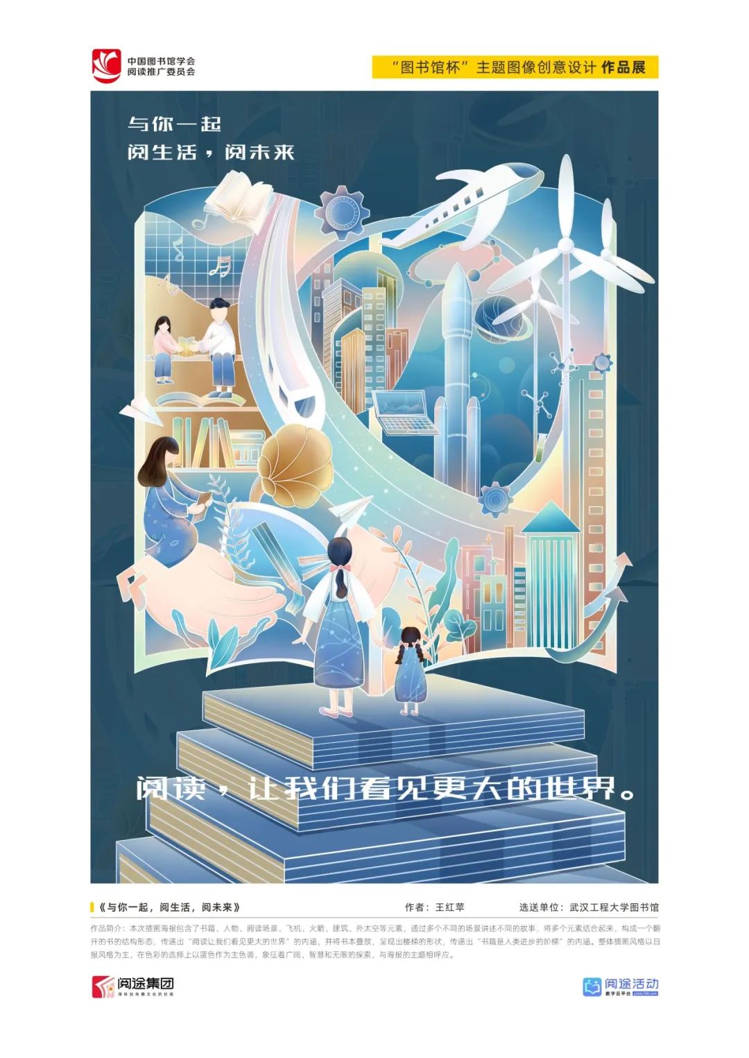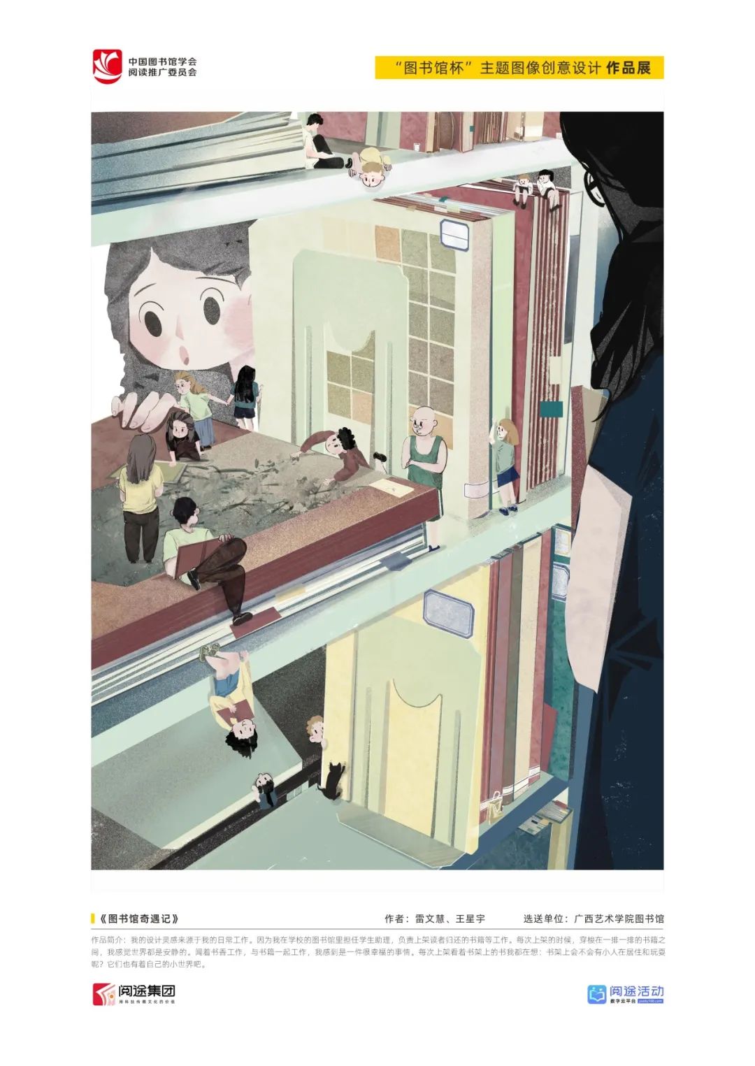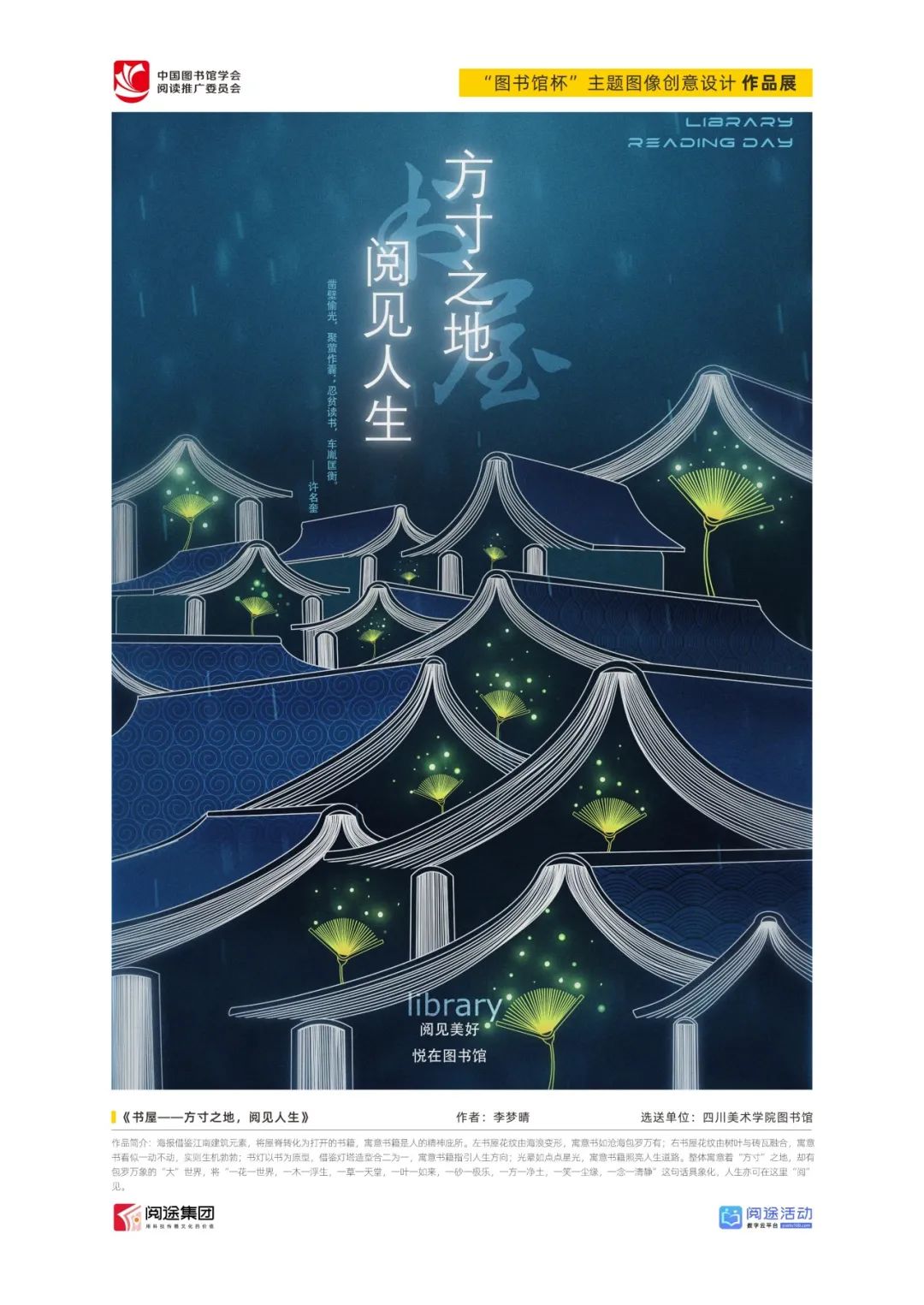 ★ 2022年,为深入贯彻落实习近平总书记给国家图书馆老专家回信精神,中国图书馆学会阅读推广委员会以“阅见美好,悦在图书馆”组织开展2022年“图书馆杯”主题图像创意设计征集活动,广东省立中山图书馆、东莞图书馆、武汉大学图书馆、南京艺术学院图书馆联合承办,阅途文化集团有限公司提供支持,通过“设计师之家数字图书馆”征集作品,获得社会各界积极反响。