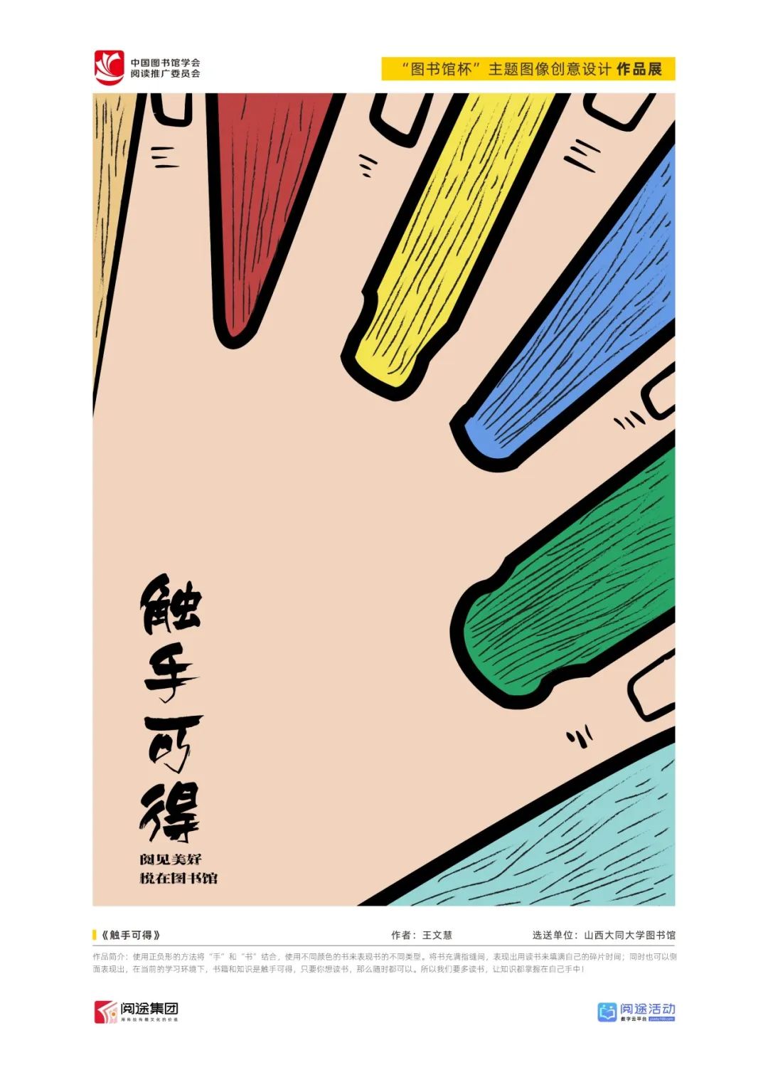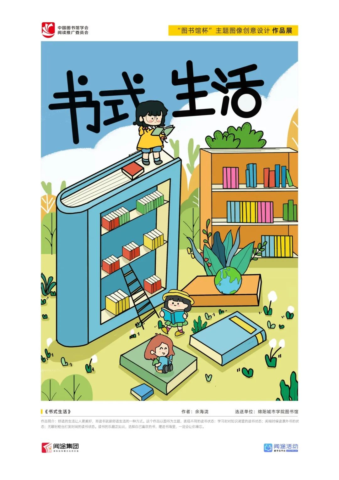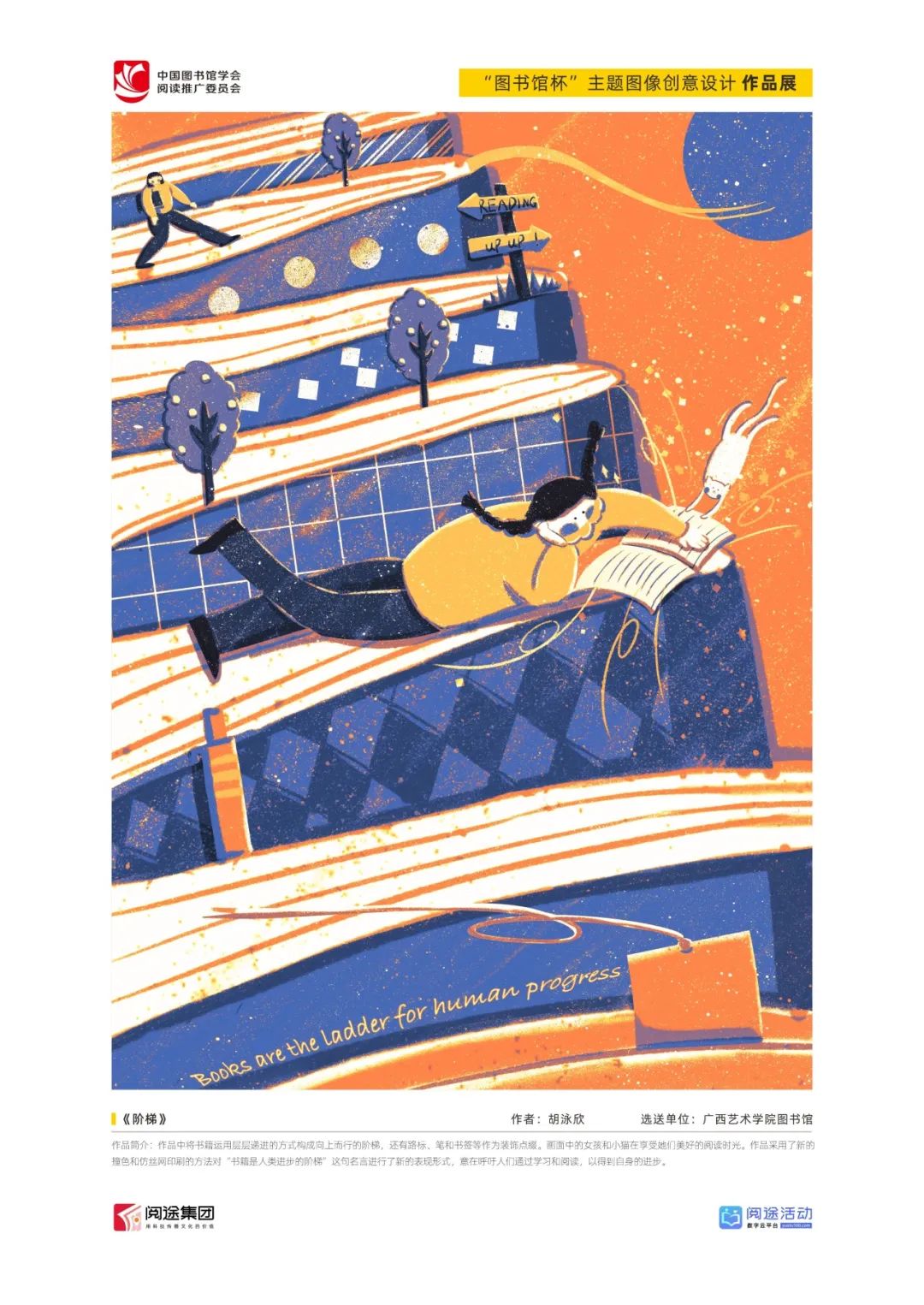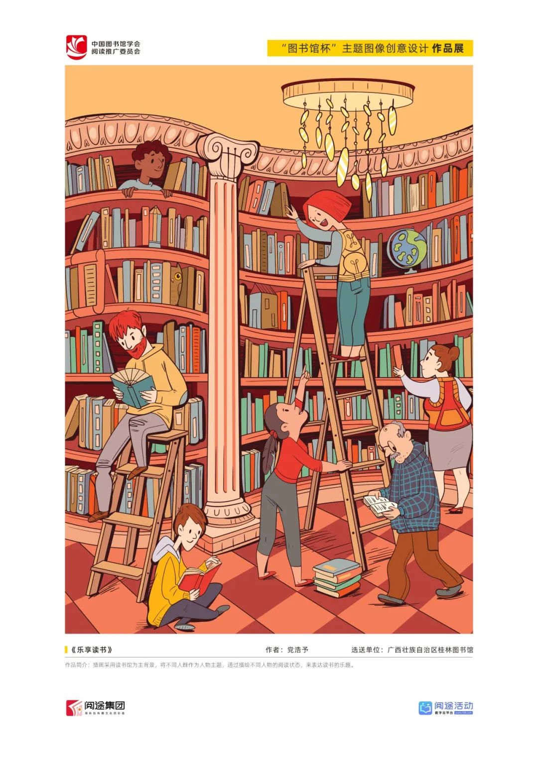 ★ 2022年,为深入贯彻落实习近平总书记给国家图书馆老专家回信精神,中国图书馆学会阅读推广委员会以“阅见美好,悦在图书馆”组织开展2022年“图书馆杯”主题图像创意设计征集活动,广东省立中山图书馆、东莞图书馆、武汉大学图书馆、南京艺术学院图书馆联合承办,阅途文化集团有限公司提供支持,通过“设计师之家数字图书馆”征集作品,获得社会各界积极反响。