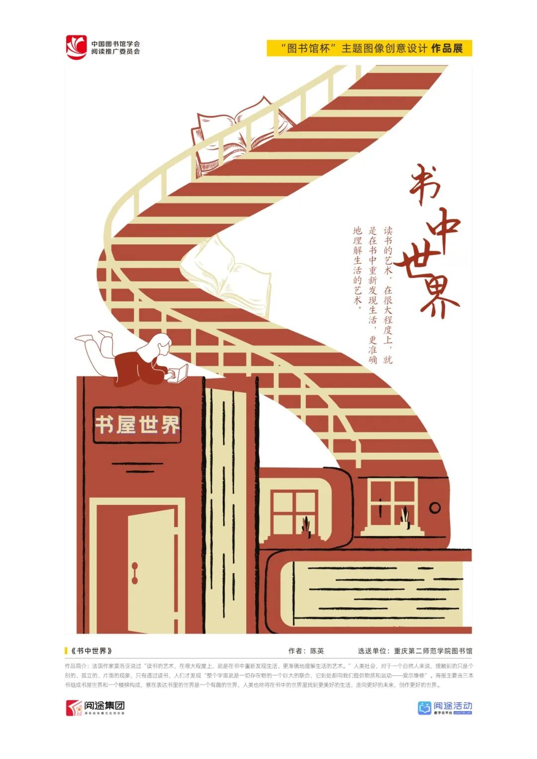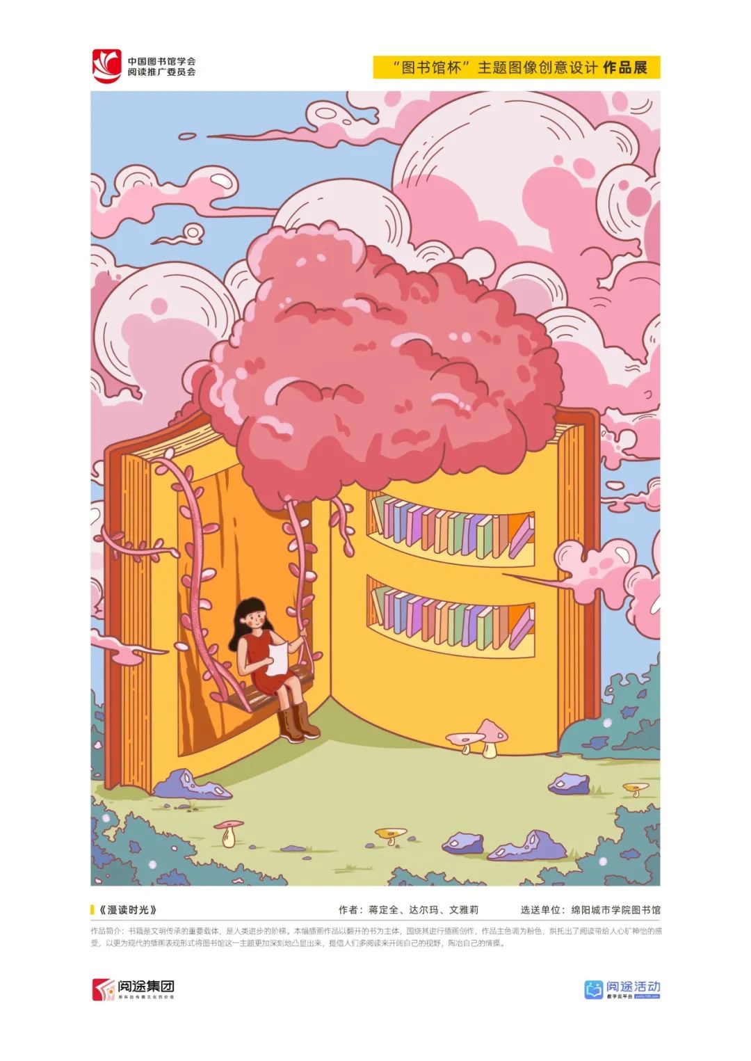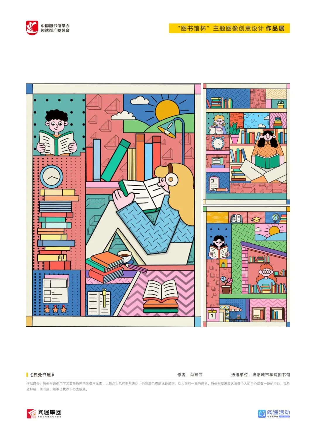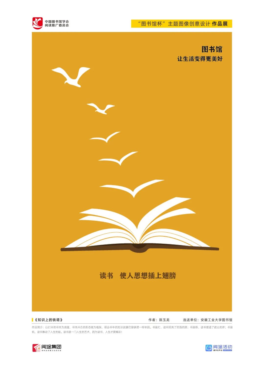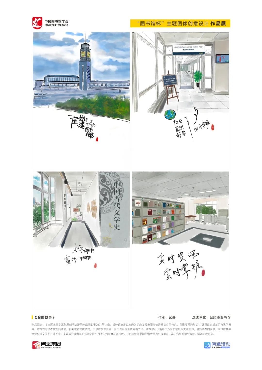 ★ 2022年,为深入贯彻落实习近平总书记给国家图书馆老专家回信精神,中国图书馆学会阅读推广委员会以“阅见美好,悦在图书馆”组织开展2022年“图书馆杯”主题图像创意设计征集活动,广东省立中山图书馆、东莞图书馆、武汉大学图书馆、南京艺术学院图书馆联合承办,阅途文化集团有限公司提供支持,通过“设计师之家数字图书馆”征集作品,获得社会各界积极反响。