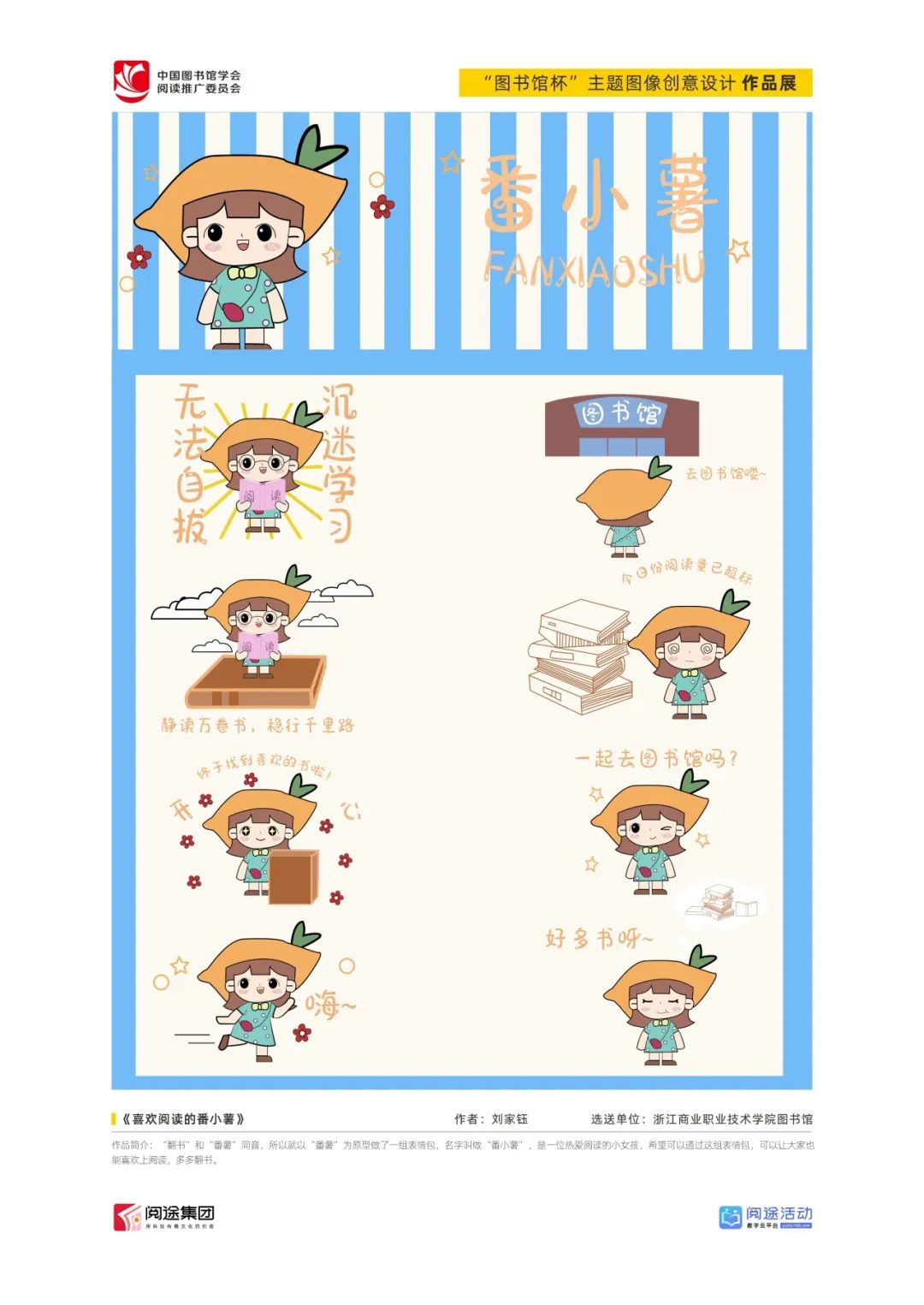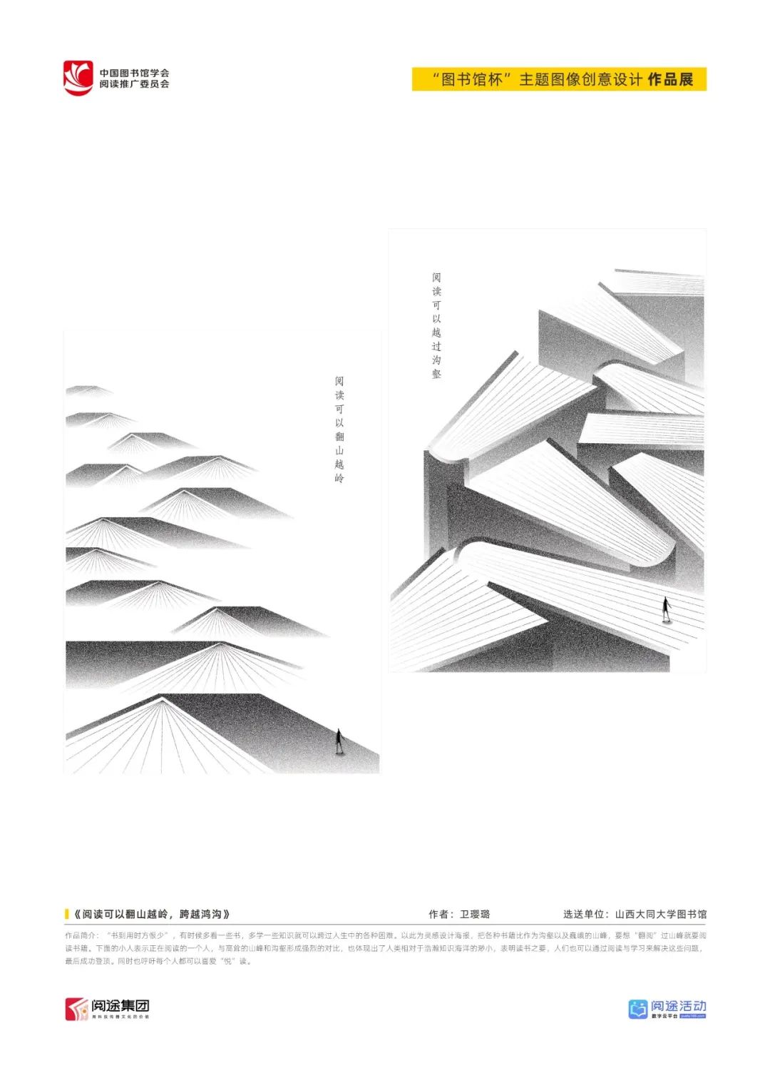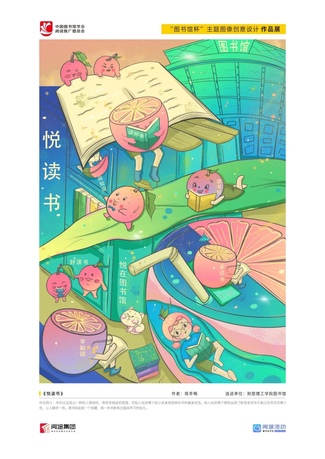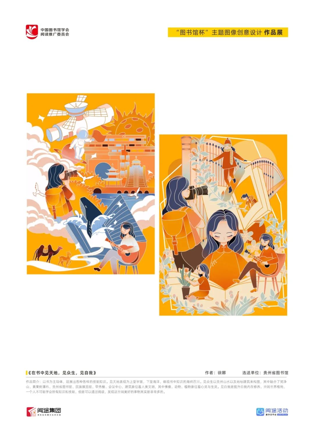 ★ 2022年,为深入贯彻落实习近平总书记给国家图书馆老专家回信精神,中国图书馆学会阅读推广委员会以“阅见美好,悦在图书馆”组织开展2022年“图书馆杯”主题图像创意设计征集活动,广东省立中山图书馆、东莞图书馆、武汉大学图书馆、南京艺术学院图书馆联合承办,阅途文化集团有限公司提供支持,通过“设计师之家数字图书馆”征集作品,获得社会各界积极反响。