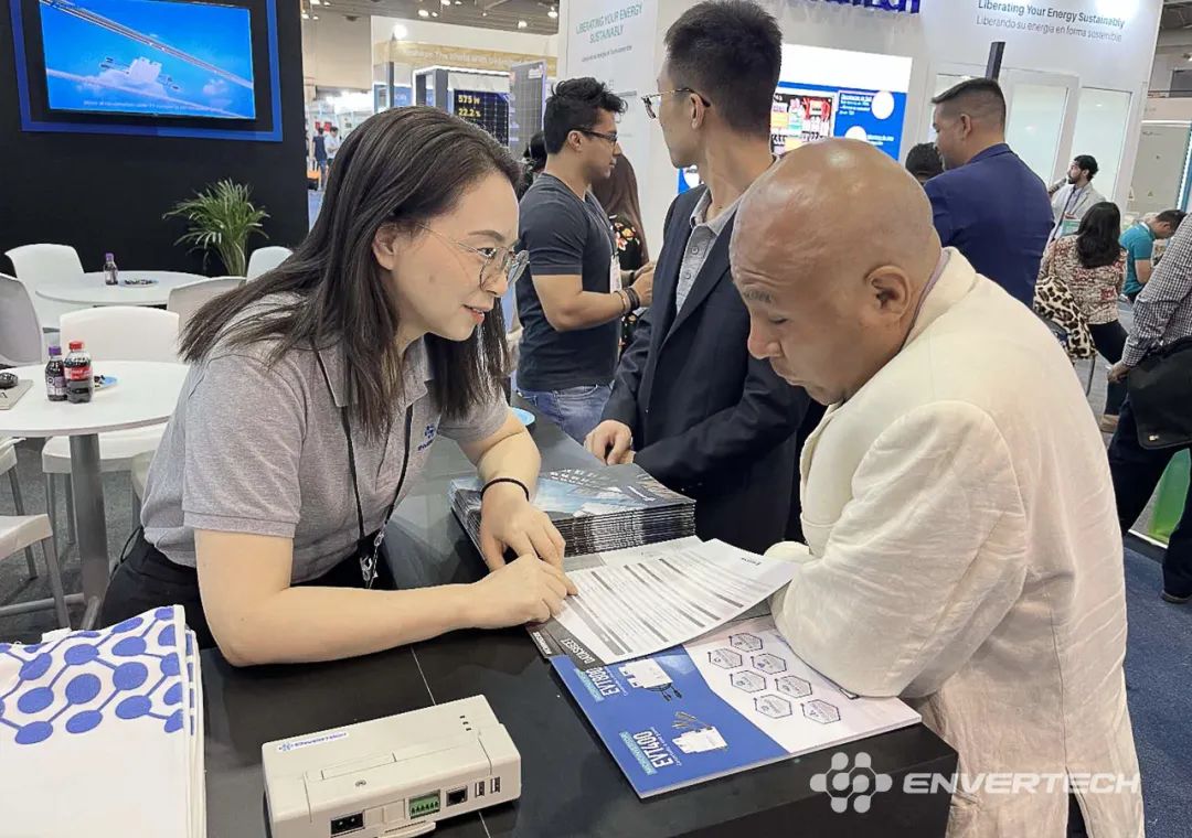 此次墨西哥展会,恩沃在D302展位带来了一系列先进的微型逆变器,具备可调输出功率和内置WiFi等功能,备受关注。尤其是EVT2000产品,适用于户用及小型工商业,咨询的客户络绎不绝。