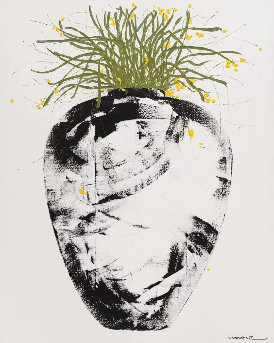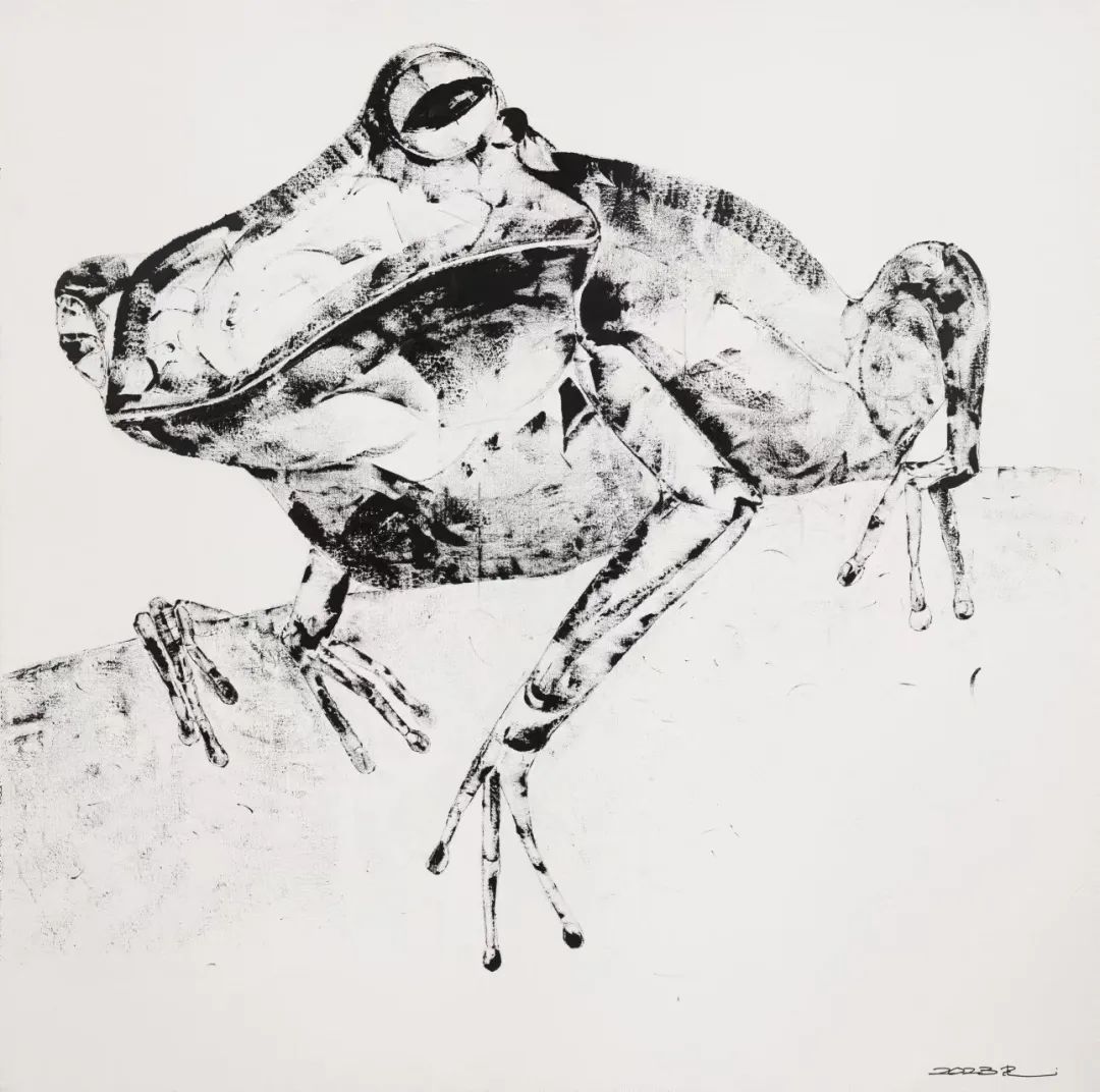 刘北光的作品同样包含着深切的“物心人情”。在“器系列”、“昆虫系列”和“鱼系列”作品中,他分别稚拙的将器皿以刮擦的方式皴画出来,不在意造型的完整性与标准,以笔触的混沌感,塑造器之形体,器皿在此成为不论残缺与圆满器物;他在“昆虫系列”和“鱼系列”中对虫、鱼的刻画以敏锐的感受力,活灵活现地擦抹出鳍、翅、目、肢等细节。这三个系列作品中对于“物”的描绘都体现出,刘北光“物哀”美学实践,一种对万事万物之美具备敏锐的观察、体察、包容、宽容、感受、感动的能力。器物或虫、鱼,不只是对传统的改造,更是在心性使然的“物哀”之哀所包含的各种情感的表达,是对物之感的真情流露。谈及“物”,中国古代文论中的“比兴”和“感物”,借助“物”的对比和迁引,达到“物”与神游,“物”随情移的境地,这些与“物哀“论也有相通之处。南朝文学理论家刘勰的《文心雕龙》中有言“人禀七情,应物斯感,感物咏志,莫非自然”。而差不多同时期,西晋文学家陆机曾云“感物兴哀”,都是“物”所对应志趣与情感的表述。其实,“物哀”美学并不完全脱离汉文化圈,其对前者也是一种补充和拓展。“物”与事应,“物哀”也对应事,然而不同之处在于,“物哀”美学除了对自然之物的感受之外,最核心的是个人情感有关的事物,而不包含社会政治和教化的内容。同样是感物生情,“物哀”中的情亦为私情,感物而哀,因哀而伤。“物哀”是个人的内心表述;是一种情感至上的表达。由此,再来审视刘北光近期的绘画作品,既跟中国传统文化中的“物”观具有关联,同时也以“物哀”美学中的启发,舍弃“物”所对应的教化性内容。他的作品常常以黑色和白色起笔,体现出他内心率真而憎恶分明的表达,单纯的画面也是情感被无限纯粹化的一种体现。他作品的去繁就简和剔除道德和教化之后的最终目的,是为了启发观者在面对这些作品时“感物心”而“知物哀”。侘寂”的审美能在刘北光的很多作品中都有体现。在“山外山系列”中他在寂寥的白色底面上,画下的或蜿蜒、或耸立的空山,山并不与水关联,山有傲然的骨形,并且以空寂抵达精神上的永恒;山在黑白相撞的皴擦勾染中以一种岿然不动的气势撼人,也勾勒出作者空寂而蕴含无限能量的心境。另外,“太湖石系列”中也包含着“侘寂”的美学;太湖石在传统审美中便是带有奇绝和古意的物什,往往不求圆满而追求形之残缺。刘北光这个系列的作品以一种大写意书法的笔触,描绘太湖石古旧意境中和残缺、凋敝之感。“侘寂”同“物哀”一样在这些作品中体现着艺术家的美学实践。清华大学美术学院史论系博士,王子云/文