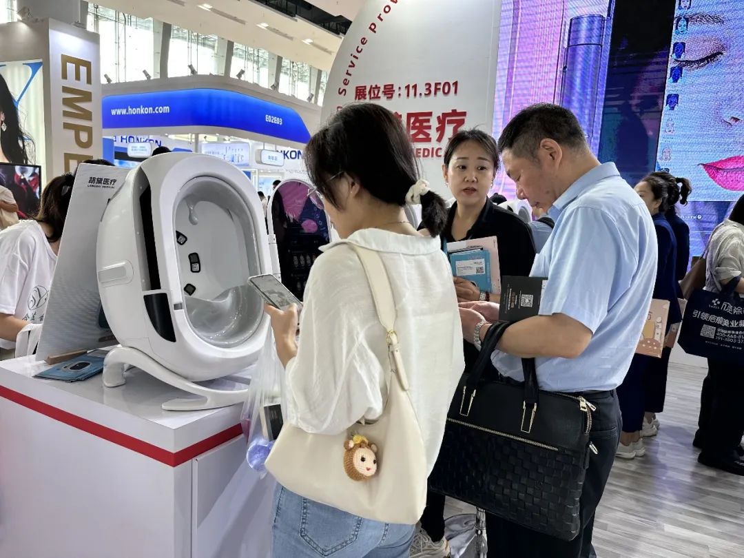 展会期间,作为参展品牌,我们全方位,多角度地对来访客户详细介绍了公司主营产品智能面部拍照仪、无创水光的相关信息,让客户对我们有了更深刻、更全面的了解。