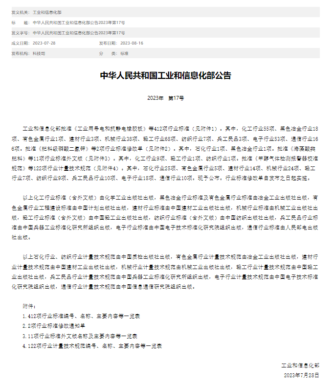 根据工业和信息化部2023年第17号《中华人民共和国工业和信息化部公告》,由全国音频、视频及多媒体系统与设备标准化技术委员会归口的《智能电视终端安全能力测试要求》(标准号:SJ/T 11897-2023)等20项电子行业标准正式发布。