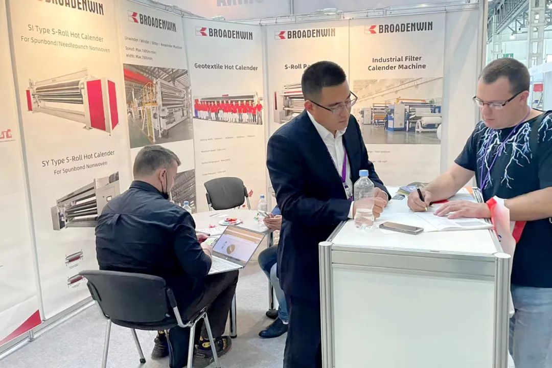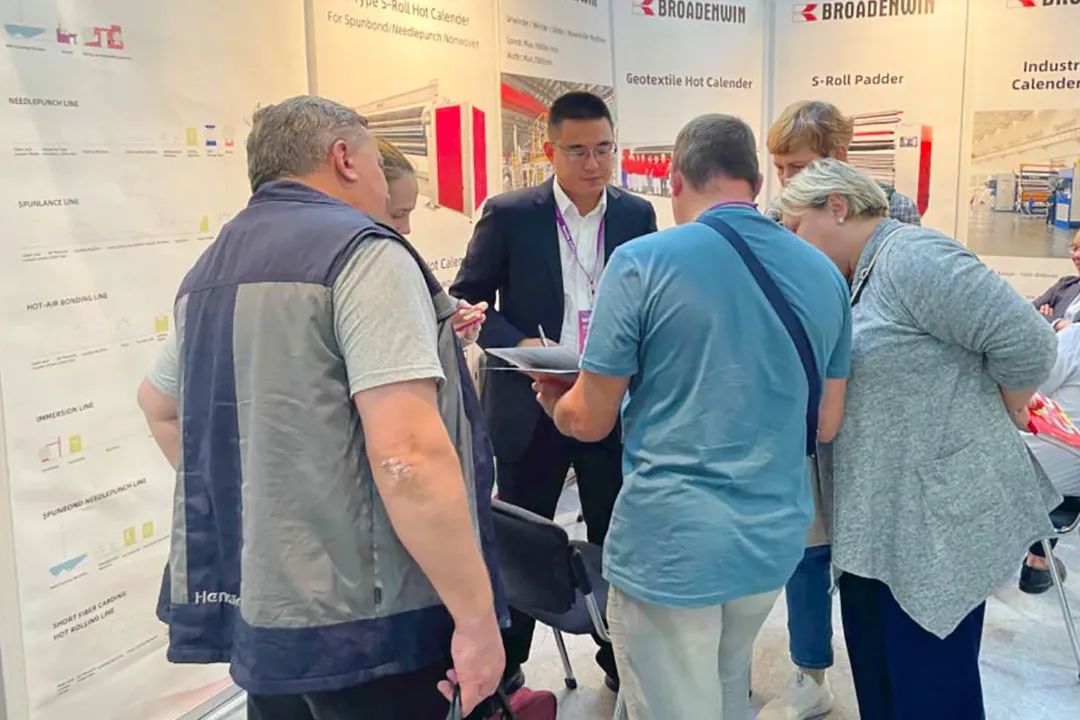 博路威团队在现场展示并讲解了针对纺织行业&非织造行业的解决方案,向来自世界各地的客户展示了其核心产品——SI型:智能化S-Roll无级调压均匀辊热轧机、SY型:智能化S-Roll无级调压均匀辊热轧机、土工布热轧机等,这些产品因其卓越性能和独特之处而备受关注。