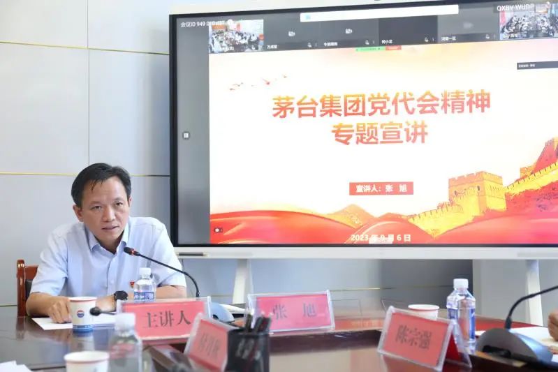 为深入学习宣传贯彻茅台集团党员代表大会精神,推动大会精神落地落实,9月6日,酱香酒公司党委书记、董事长张旭为公司全体员工宣讲茅台集团党员代表大会精神。