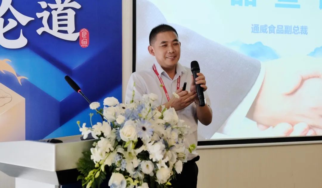 通威食品副总经理薛峰介绍了通威食品未来与餐饮行业深度融合的布局。公司聚势聚焦水产品发展战略,凭借在基地、食安、研发、产销协同、市场推广等环节的核心竞争力,为B端、C端客户提供丰富的产品选择和定制服务。