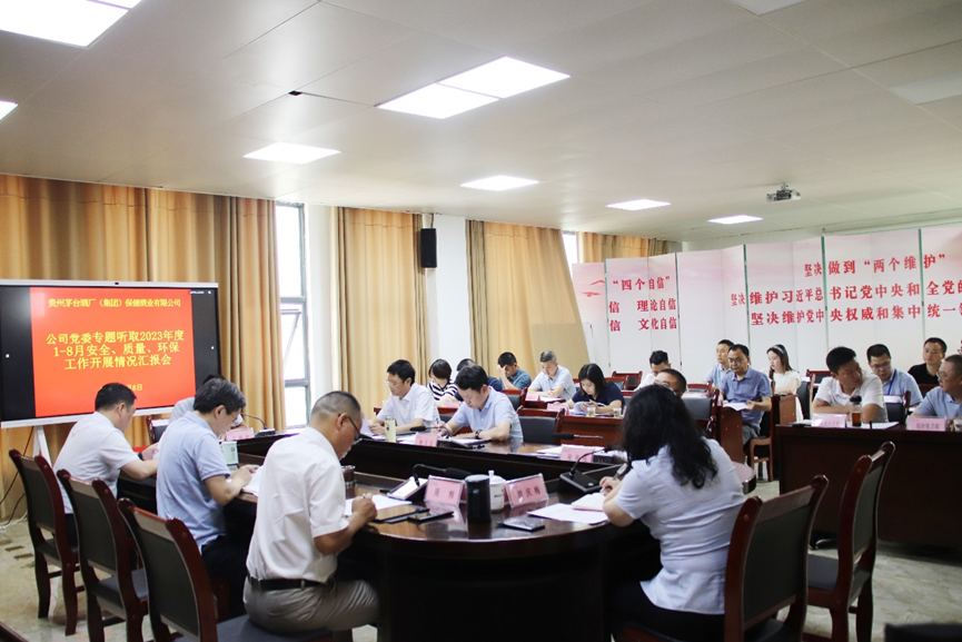 9月6日下午,保健酒业公司党委在临租基地三楼会议室专题听取2023年度1-8月安全、质量、环保工作开展情况的汇报。保健酒业公司党委书记、董事长汪智明主持会议并讲话,党委副书记、总经理冯铖,党委副书记、工会主席周辉,党委委员、副总经理杨天宝、张帝伟、陈锐,副总经理游庆梅出席会议。