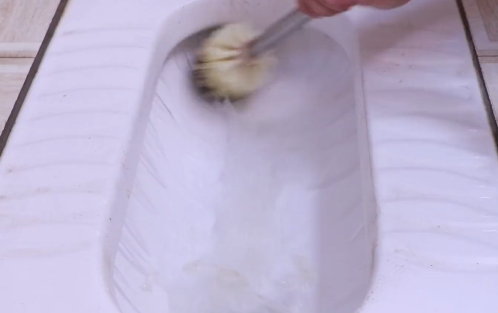 第四个用途,还可以有效清洁马桶黄渍。大家可以看到马桶里有很多的黄色污垢,不用担心,直接将白酒小苏打溶液给它喷洒上去,多喷洒一些,然后让它静置两分钟。接下来准备马桶刷刷试一下,白酒里面有酒精,消毒又杀菌。小苏打的清洁能力,去污能力非常的强,可以快速去除马桶里的黄色污垢,效果非常的不错。接下来我们冲一下水,大家可以看到马桶冲洗的非常干净,下次也可以用上这个方法。