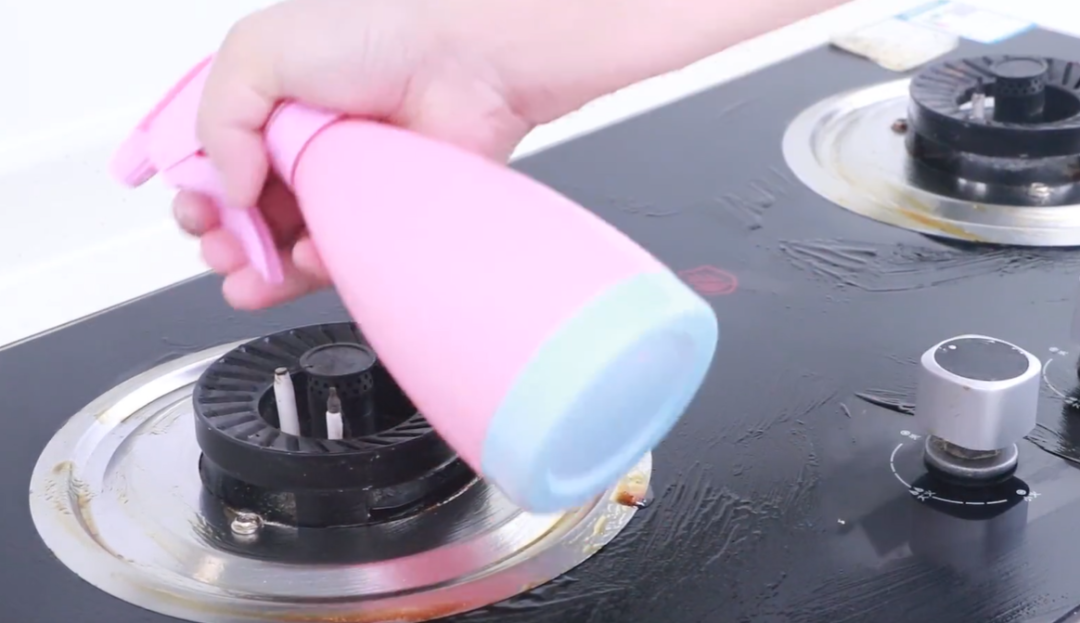 第二,直接将白酒小苏打溶液倒进喷壶当中,就可用来清洁灶台油污。大家可以发现我们在炒菜的时候,油污溅出来是非常脏的,油腻腻的油污非常难清洁,