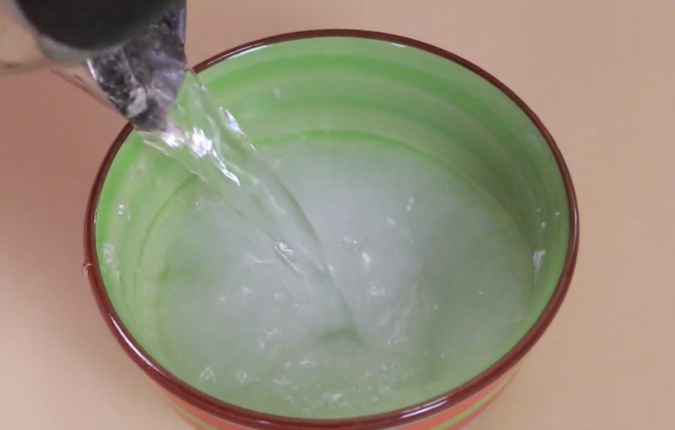 再倒入一碗清水稀释一下,用筷子搅拌溶解,然后就可以拿去利用起来了。