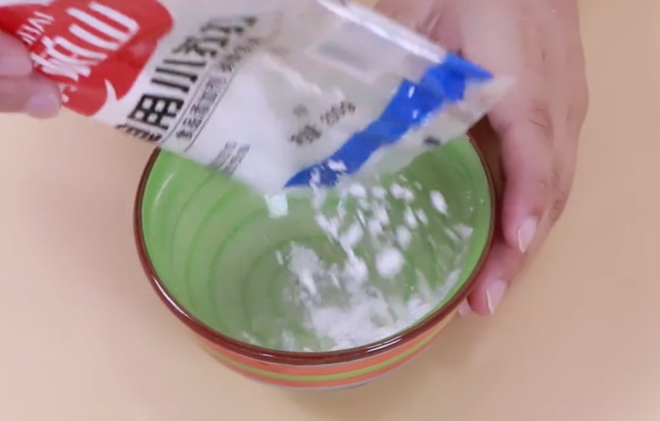 首先我们准备一个碗,直接将小苏打给它倒进去,