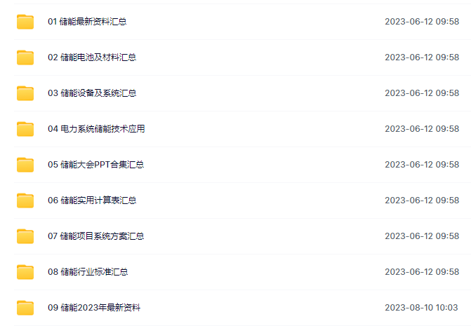 为帮大家提高专业知识,我整理了一套“储能资料大全”,共500份,我将资料整理成九大板块,方便大家系统学习。
