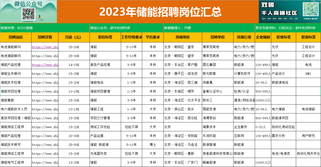 通过《2023年储能招聘岗位汇总Excel表》,大家可以更加了解自己所在城市的招聘信息,包括薪资水平、经验要求、热门方向等。