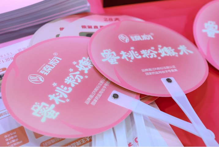 用心服务。简简单单的四个字,深深刻在了臻粉的品牌理念里。9月初广州天气还有些闷热,嘉之臻团队贴心准备了5万把“蜜桃扇”,在宣传品牌的同时也为参展同行、游客提供了清凉与方便;