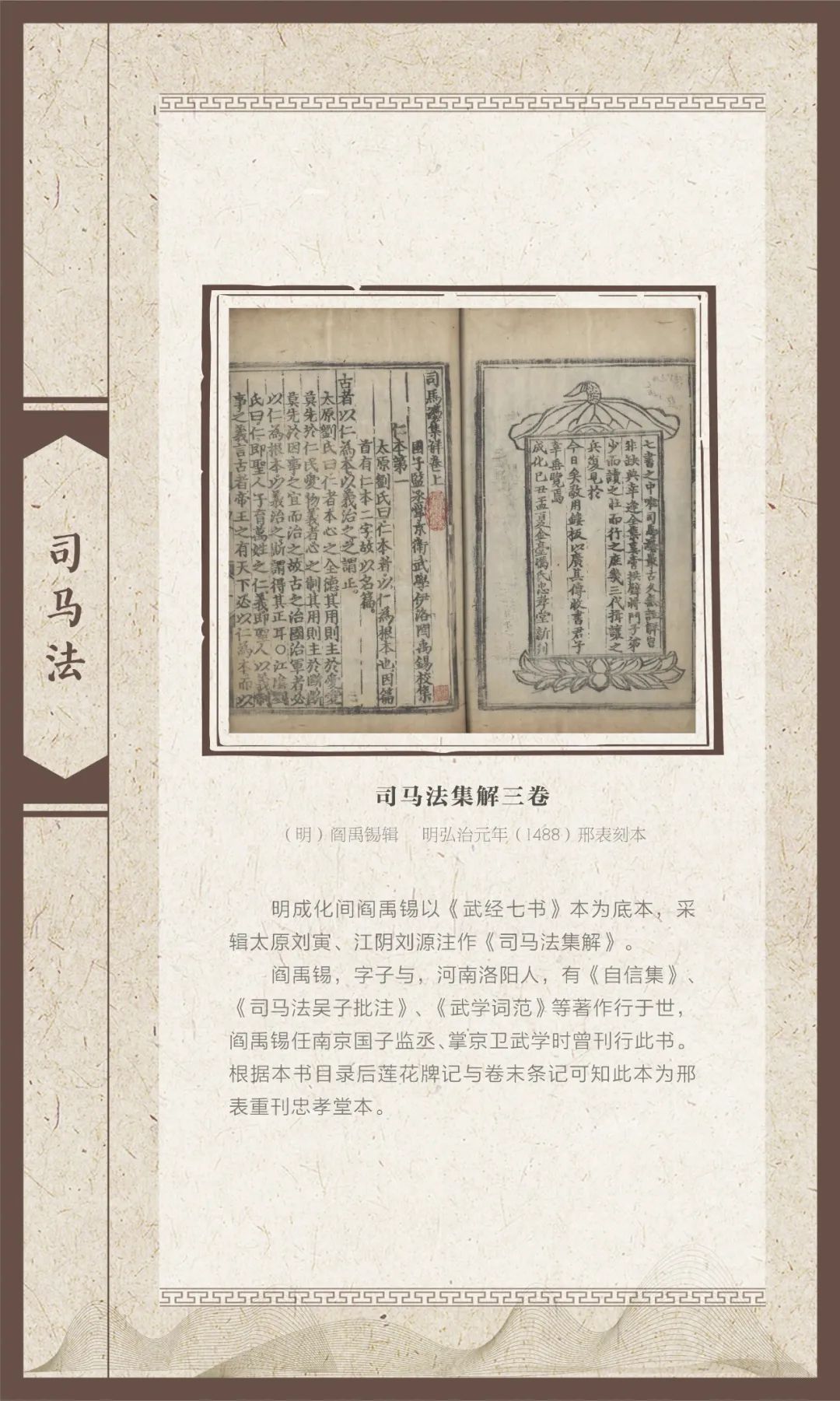 此次展览,展出国家图书馆馆藏珍本兵书十部,重点介绍兵书内容、古籍版本、作者轶事等,以期望各位读者了解中国古代兵书的文献价值与中国古代兵学的辉煌成就。