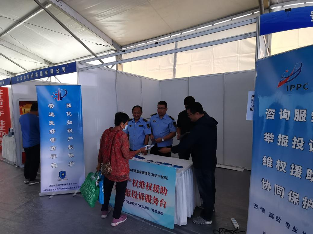9月7日,内蒙古(通辽)第八届中医药(蒙医药)产业博览会在通辽市体育广场正式开幕。为推进知识产权强市建设,切实做好博览会知识产权维权援助工作,通辽市市场监督管理局(知识产权局)、通辽市知识产权保护服务中心联合成立知识产权服务工作组,进驻第八届中医药(蒙医药)产业博览会,共同开展维权咨询、普法宣传等相关工作。