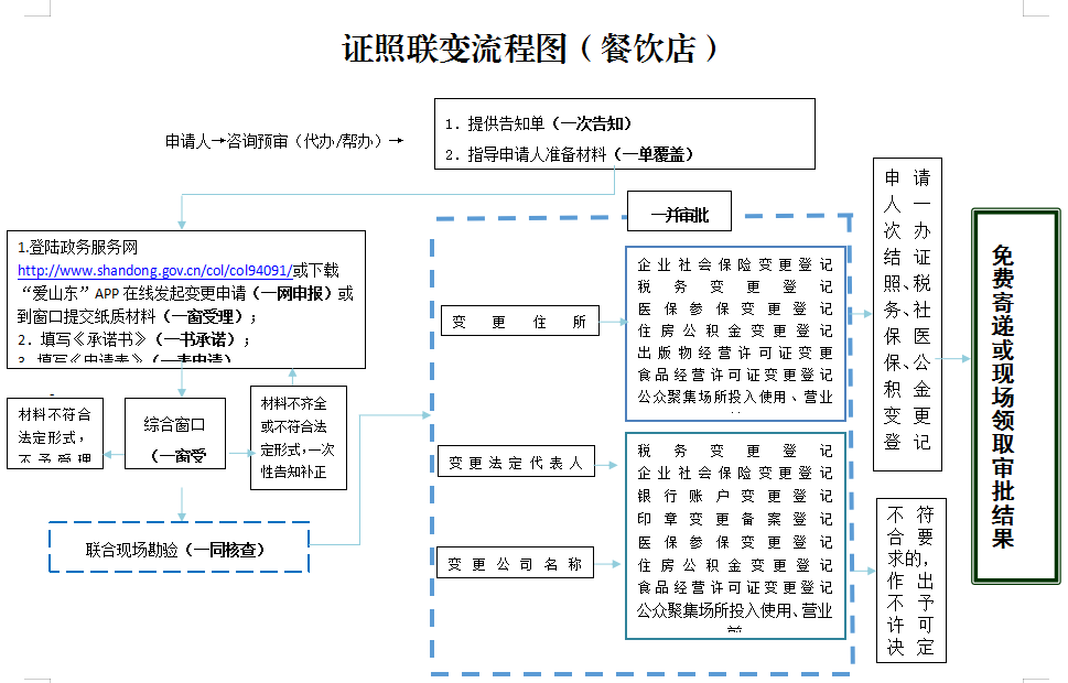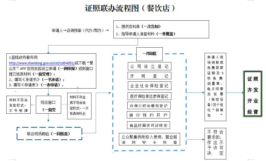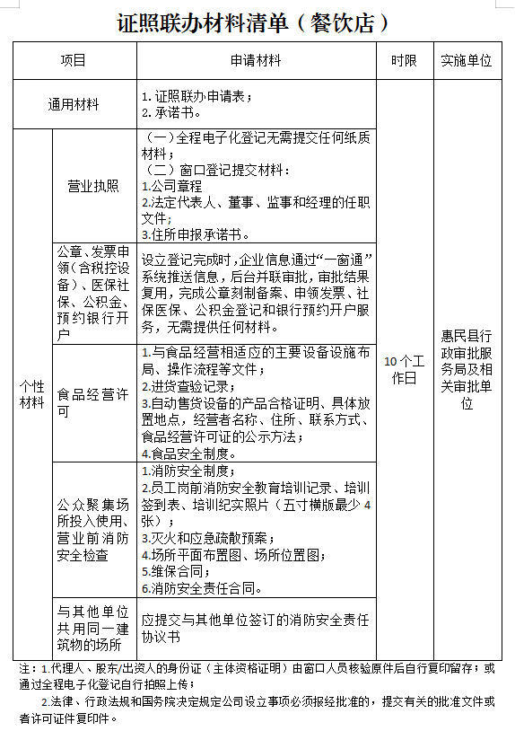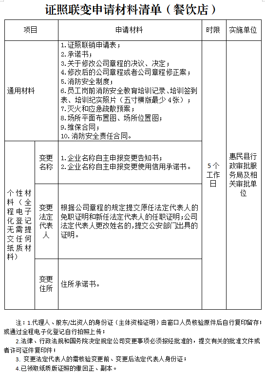为进一步提升行政审批便利度,惠民县行政审批服务局推出51个行业证照“三联办”套餐服务实现营业执照与许可证件联合开办、联合变更、联合注销“三联办理”。并在县政务服务中心一窗受理综合服务区开设“三联办”综合受理专窗,为企业提供咨询引导、帮办代办、综合受理、统一出件“一站式服务”。3.公众聚集场所投入使用、营业前消防安全检查(建筑面积在200平方米以下且设在单层公共建筑或多层公共建筑首层的不需办理)。二、餐饮行业(联变)