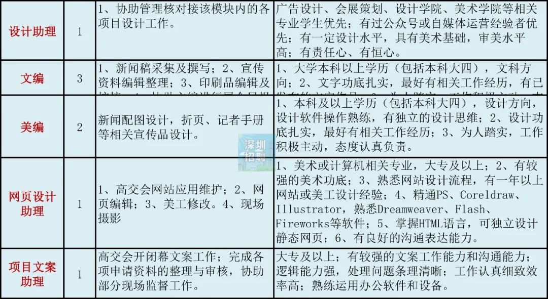 提醒:本则招聘资讯,深圳招聘已经对用人单位的资质进行了审核,属于正规用人单位。当然,如果在实际应聘中出现与招聘内容不符的或者虚假的,请向我们进行反馈,联系QQ:30653930;微博@深圳招聘 而本微信的招聘资讯无特殊说明均为公司直招,超过发布时间一个月以上的,有可能已失效,请留心查阅。