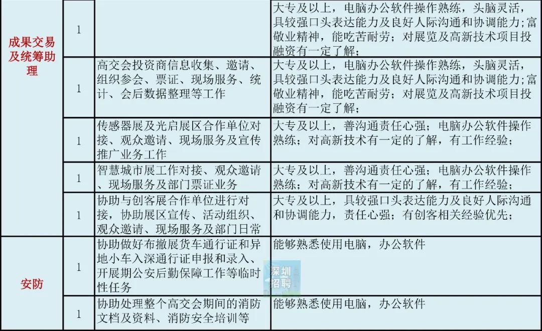 第25届中国国际高新技术成果交易会(高交会)将于2023年11月15日至19日举行。深圳会展中心近期拟招聘临时工作人员多名(临时工作人员工作时间为:录用日起至2023年11月19日止。面试合格后9月份开始陆续入职。)