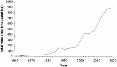 另一方面,尽管葡萄园面积稳定,但葡萄酒产量却急剧下降,