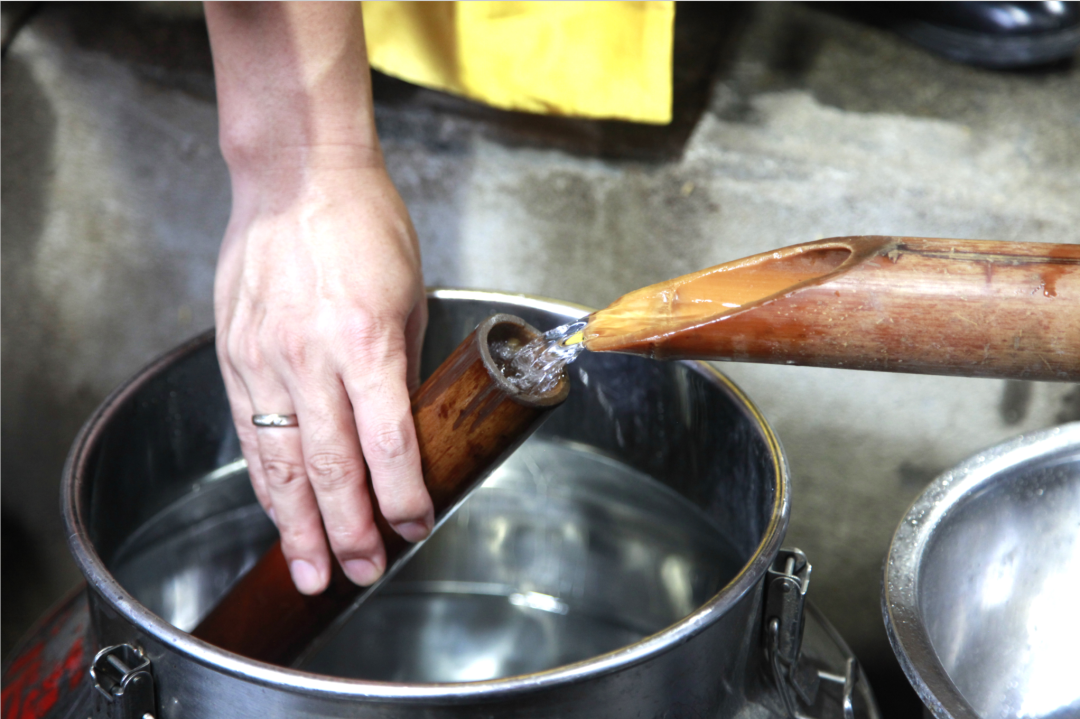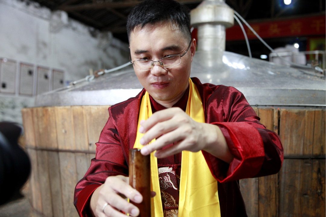 随后,由副总经理兼总工程师白酒国家评委 黄小晖进行的是取水和敬拜水神的仪式。这两个步骤看似简单,实则蕴含深意,是在向自然界的馈赠表达敬意,强调陶令酒业对自然环境的尊重和感激。