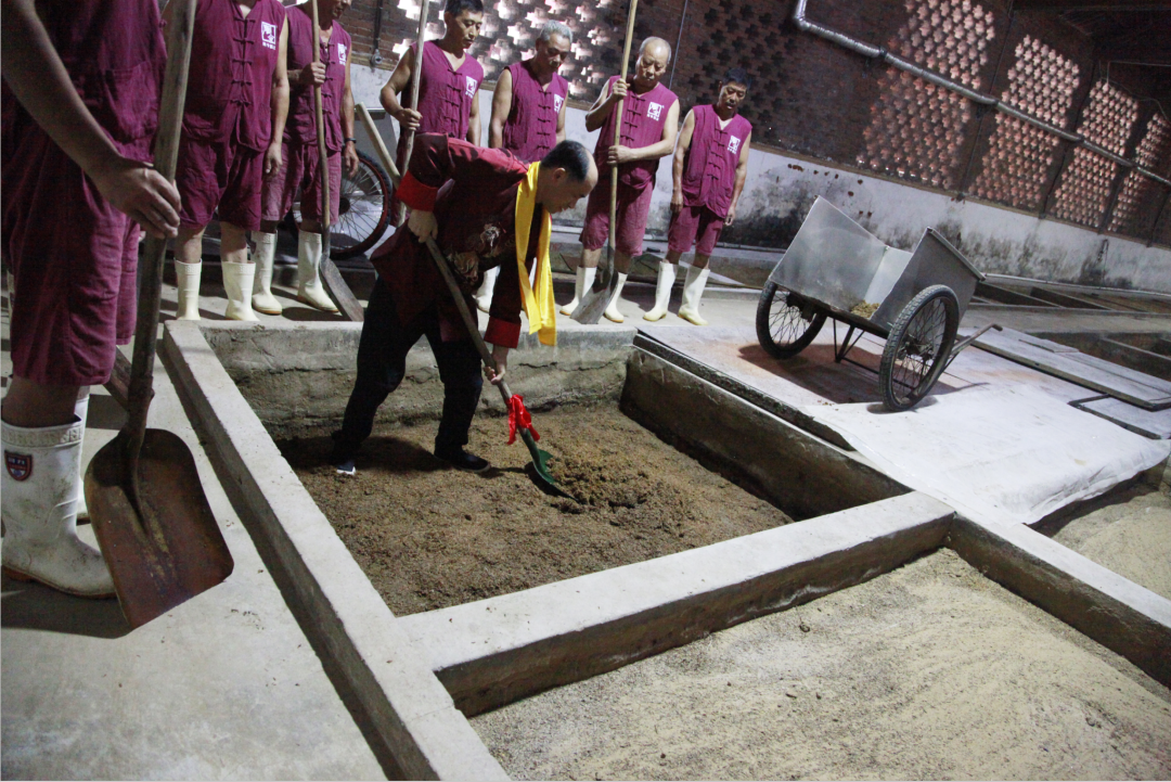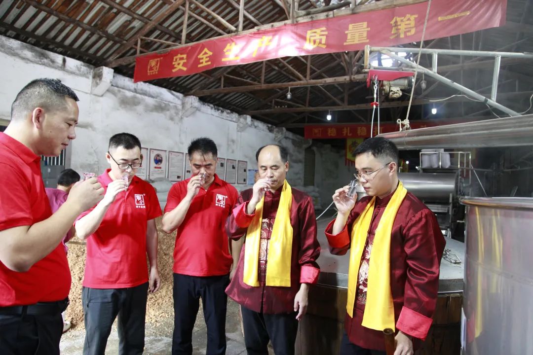 表达完对神明的敬意后,江西陶令酒业有限公司的董事长李武杰亲自持铁锹,铲出了第一铲经过3个月精心酝酿的酒醅,浓郁的酒香立刻在空气中弥漫开来,现场一片欢腾。
