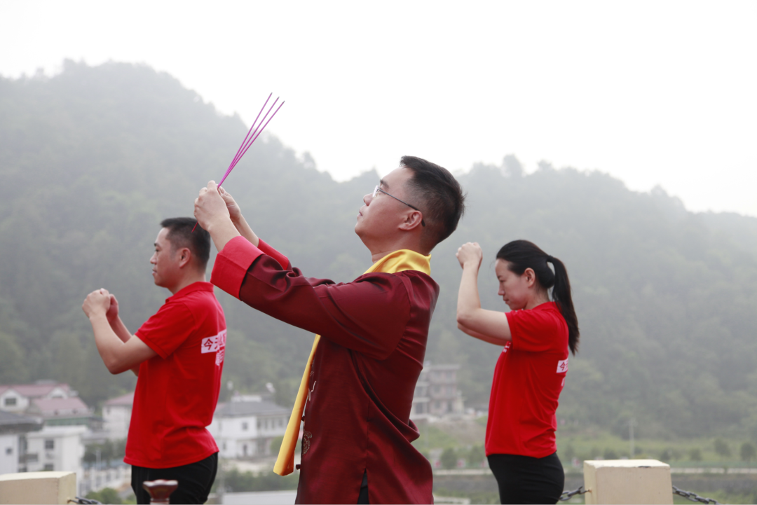 在江西陶令酒业有限公司 董事长 李武杰的带领下,祭祀仪式庄严肃穆的开启,这代表着虔诚的陶令人对天地神的敬畏,对古老技艺的传承,以及对匠心酿造的坚守。袅袅香烟中,感谢天地、神灵对酿酒的恩赐,同时也是向这些力量表达敬畏和祈求。在这个过程中,李武杰董事长和所有的参与者都充满了虔诚和敬意,使得整个仪式充满了庄重和神圣。