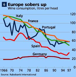 这些地区的人均葡萄酒消费量几乎减少了一半。