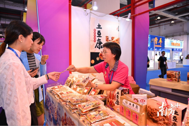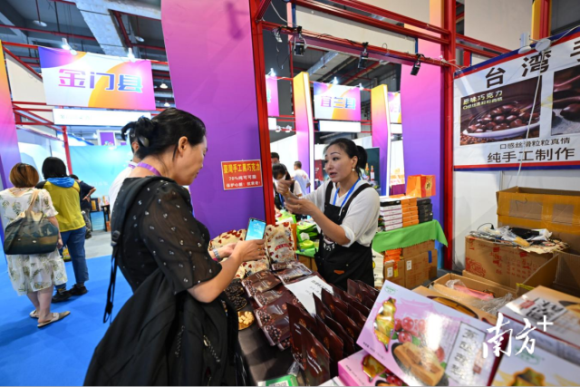“我们今天是来做宣传的,展位上的美食都免费送给顾客。”欣园食品有限公司总经理赖振兴介绍,闹滋闹滋风味杏仁是新产品,有红烧牛肉面、香脆咸酥鸡、荔枝等多种独创口味,获得iTQi食品米其林推荐,目前在大陆还没有售卖。希望通过台博会,让更多市民认识这款坚果。