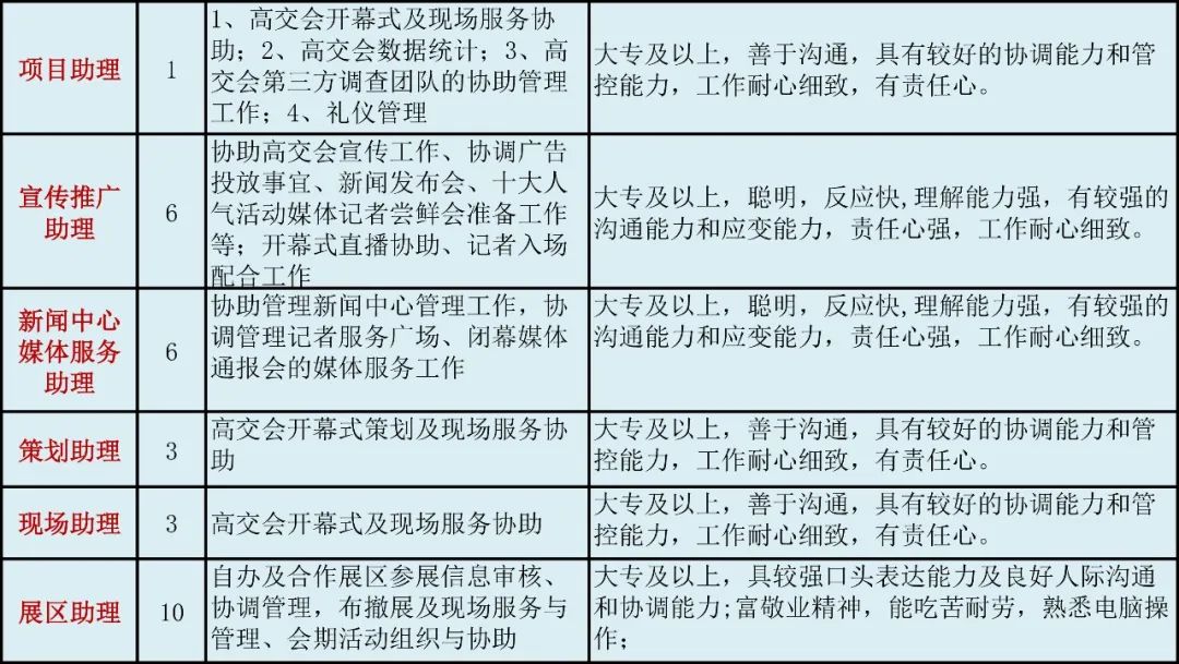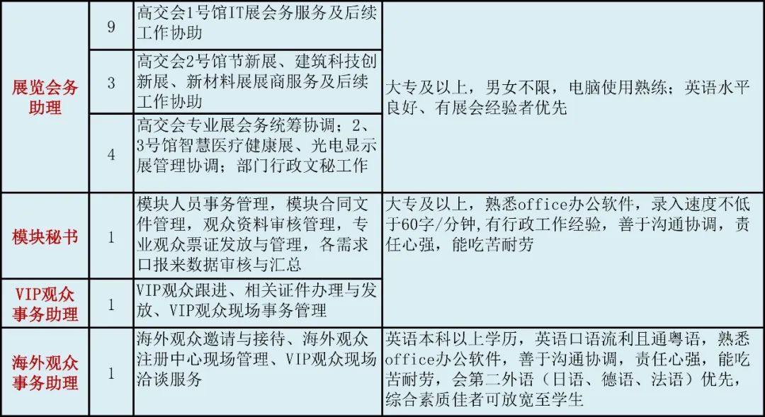 第25届中国国际高新技术成果交易会(高交会)将于2023年11月15日至19日举行。深圳会展中心近期拟招聘临时工作人员多名(临时工作人员工作时间为:录用日起至2023年11月19日止。面试合格后9月份开始陆续入职。)