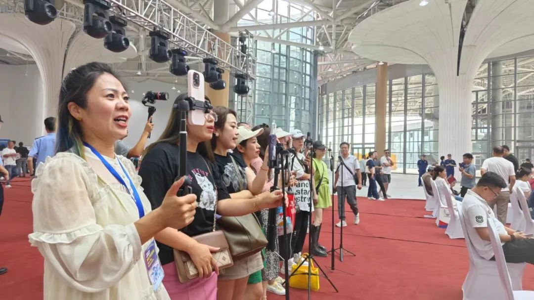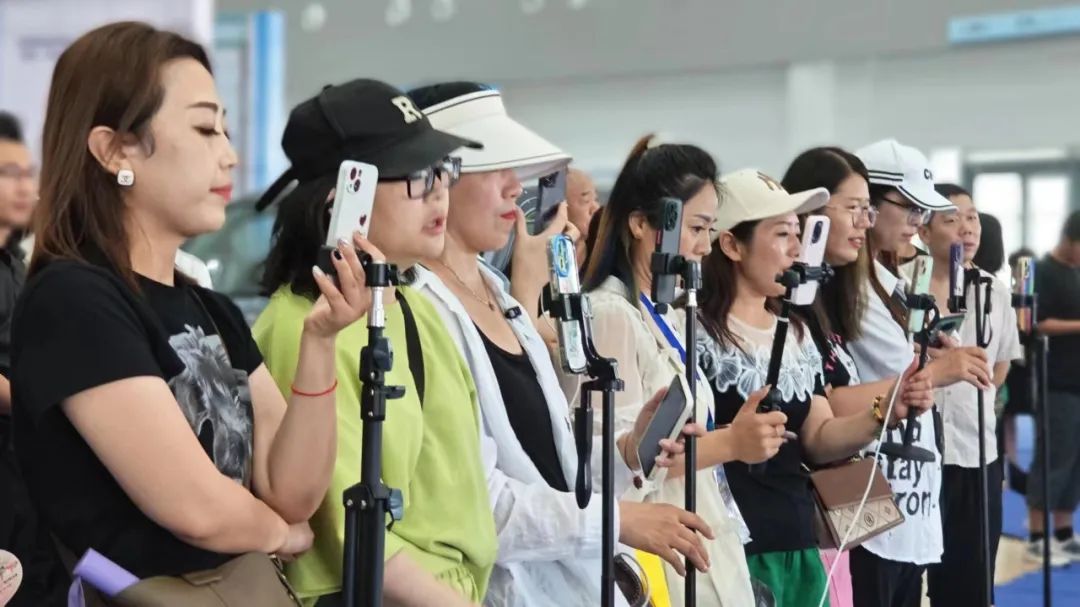 车展现场,邢台20名网红直播达人”穿梭在各个汽车展台,为厂商现场直播,增加线上人气,吸引消费者到现场购车。