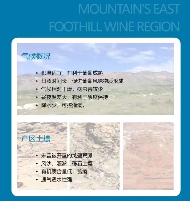 这里是世界公认的酿酒葡萄生产黄金地带之一,是中国最大的酿酒葡萄集中连片种植区和酒庄酒产区。