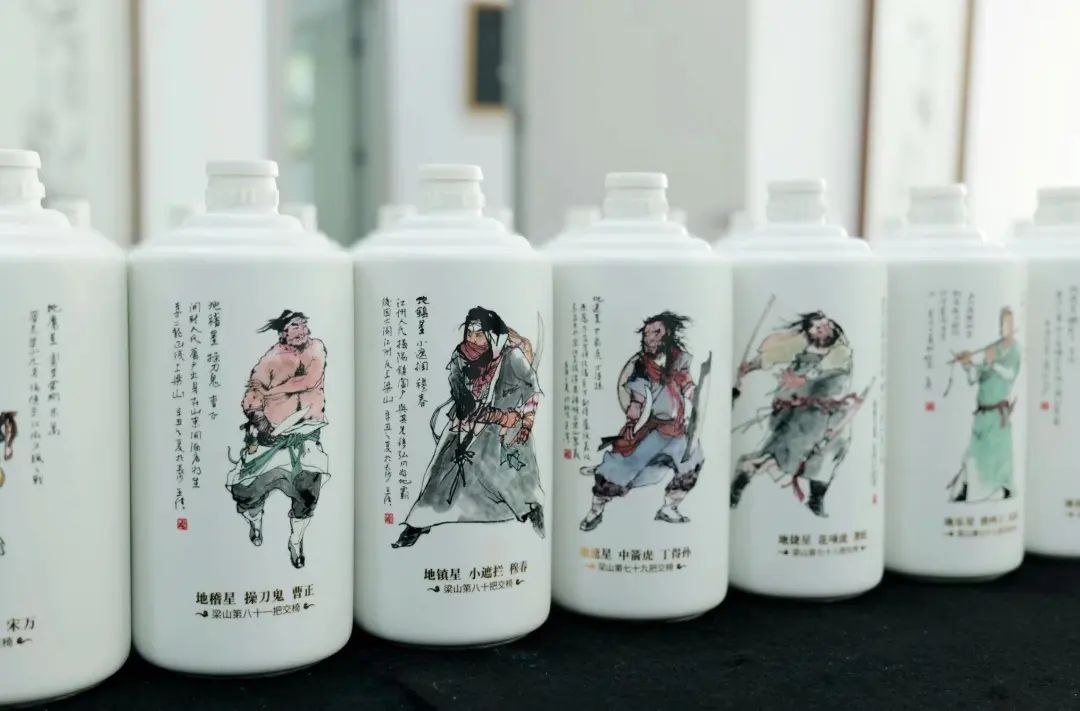 汉圣水浒108酱酒采用红官窑特制瓷瓶,将108位水浒英雄人物画像通过高温瓷、低温瓷反复煅烧,将人物画像色彩一比一还原在瓶身。将108瓶水浒酒摆放在一起,一幅幅栩栩如生的水浒人物画像图仿佛将水浒故事展现在眼前。