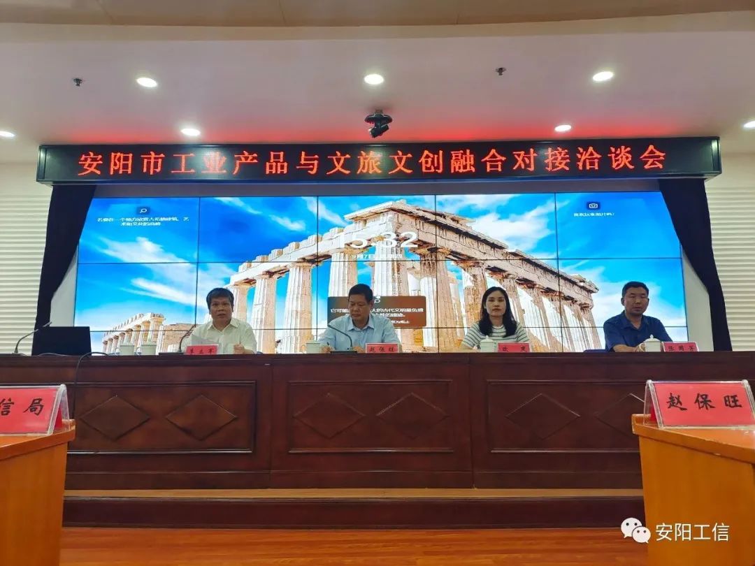 为推动我市工业产品与文旅文创深入融合,创新产业发展新模式,激发企业发展新潜力,启动经济发展新动能,9月7日,市工信局牵头组织召开了“安阳市工业产品与文旅文创融合对接洽谈会”。市政府副秘书长赵保旺参加会议并讲话,市工信局党组成员、市工业和信息化发展中心主任李立军主持会议。