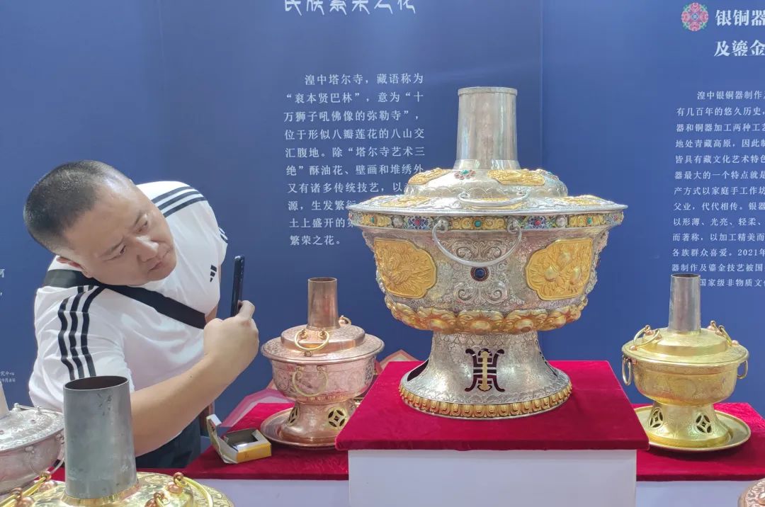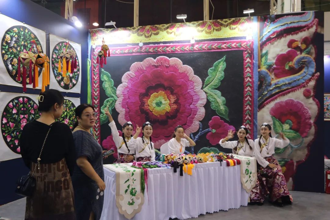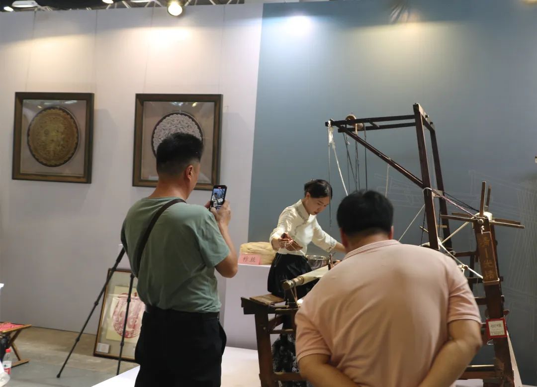 展示周现场以“大河上下、奔流入海”为主题,根据地域分布,借助黄河流向特点,精心策划黄河流域非遗精品展板块,分别了设立西宁、兰州、成都等10家城市非遗会客厅,展示羊皮筏子、锅庄舞、马头琴制作技艺、川剧变脸等。而大运河沿线省市则以“锦绣中华、应运而生”为主题,策划山东省大运河沿线城市织染绣艺术与生活展板块,展示相关传统工艺的传承发展现状。据初步统计,这次有来自省内外的218个非遗项目、近300名非遗传承人齐聚“鸢都”,生动展现了以山东为代表的黄河流域、大运河沿线省区市非遗事业高质量发展的新气象、新画卷。