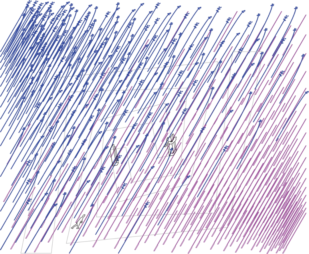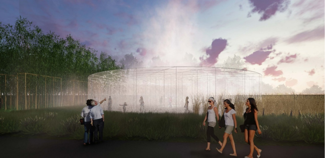 将花园设计成竹林丛园,光影交错,微风拂叶,吸引游客进入花园。园子由自然和人工元素逐渐融合而成,前者由为节日种植的活竹组成,后者则由按网格布局建造的竹竿组成。直到转过几个弯,游客们会注意到对面还有一个长凳,这就是花园返回之路的起点。