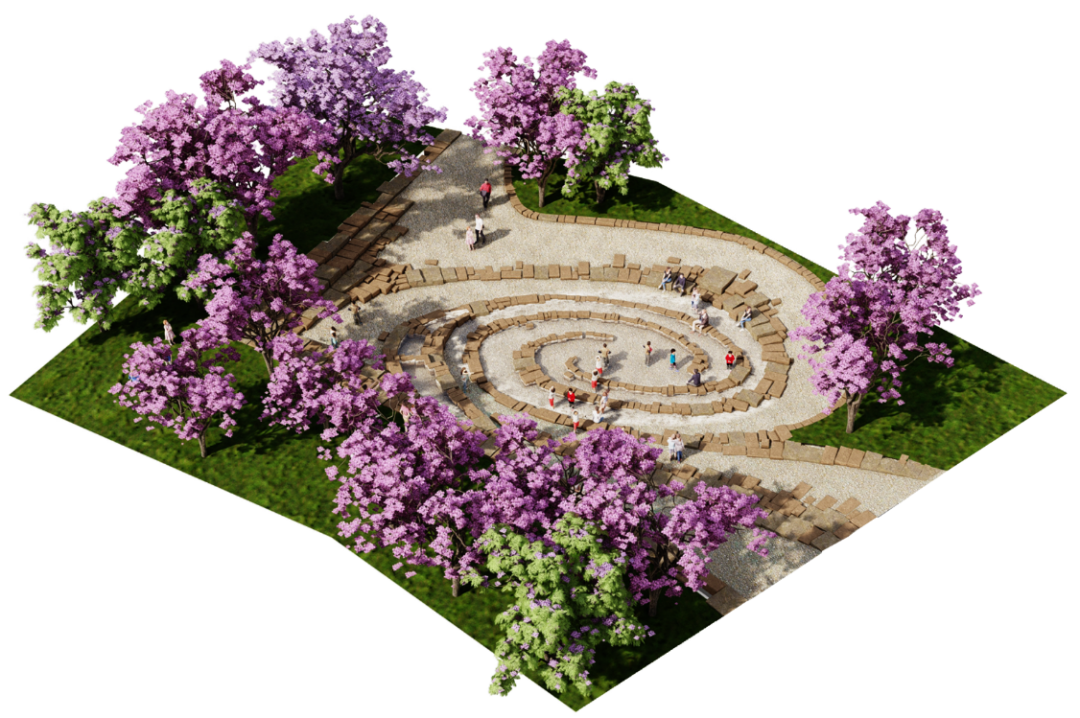 入口处的水面是花园的“请柬”,遵循风水的能量原则。如果把患者带入园内进行园艺治疗,那么设计的空间就成为一个治疗花园,它还可以帮助受抑郁症影响的人们发现园艺在自然中对抗日常城市压力的有益作用。科学研究表明,尤其是在痴呆症、抑郁症、阿尔茨海默病和饮食失调的情况下,参与园艺手动劳动对减少药物和改善患者情绪非常有益。