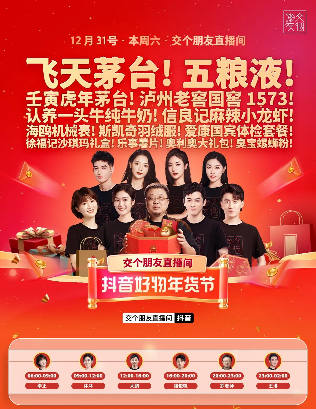 交个朋友直播间带货产品清单来了!惊喜价飞天茅台、五粮液、壬寅虎年茅台、泸州老窖国窖 1573、认养一头牛纯牛奶、信良记麻辣小龙虾、海鸥机械表、斯凯奇羽绒服、爱康国宾体检套餐、徐福记沙琪玛礼盒、乐事薯片、奥利奥大礼包、臭宝螺蛳粉等好物!详情请查看长图。