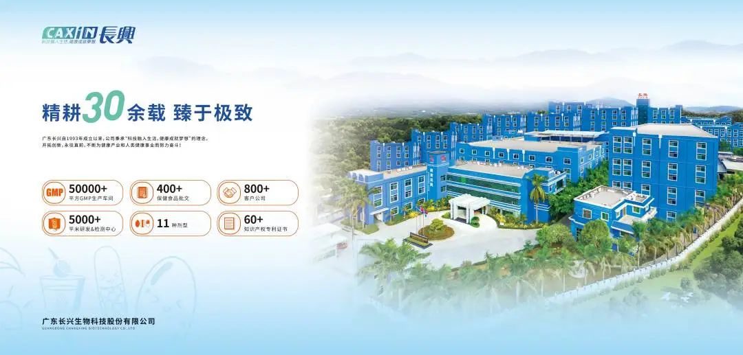 广东长兴生物科技股份有限公司,始创于1993年,是一家以国家高新技术为根基,集保健食品、膳食营养强化食品、功能性食品等研发、生产、销售于一体的规模化、现代化综合性大健康产业集团。产品经营渠道覆盖电子商务、百强连锁、医院诊所、第三终端、慢病管理公益推广等板块。
