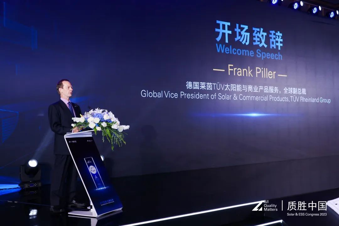 德国莱茵TÜV太阳能商业与商业产品服务全球副总裁 Mr. Frank Piller作开场致辞