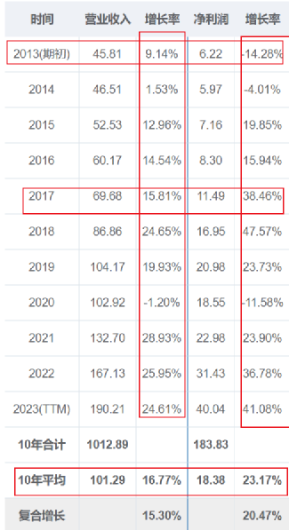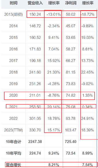 洋河近10年的营收增速