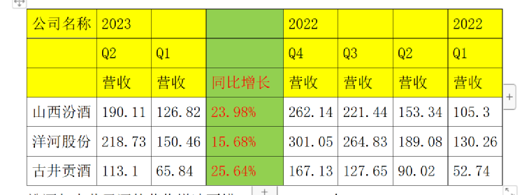 汾酒与古井贡酒的营收增速不错,一个23% 一个25%