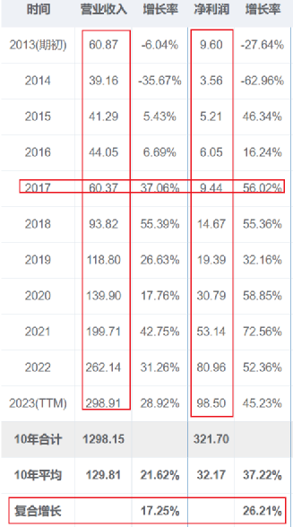 山西汾酒近10年的经营数据