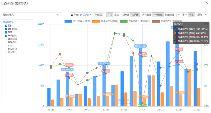 汾酒2023年上半年营收情况