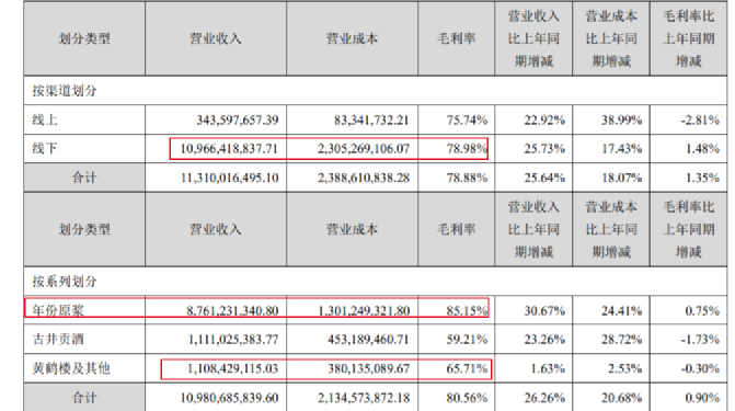毛利率方面,年份原浆酒最高,约为85% ,黄鹤楼 次之约65%