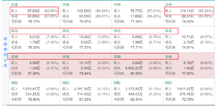 华北,华南并没有打开市场,营收占比小
