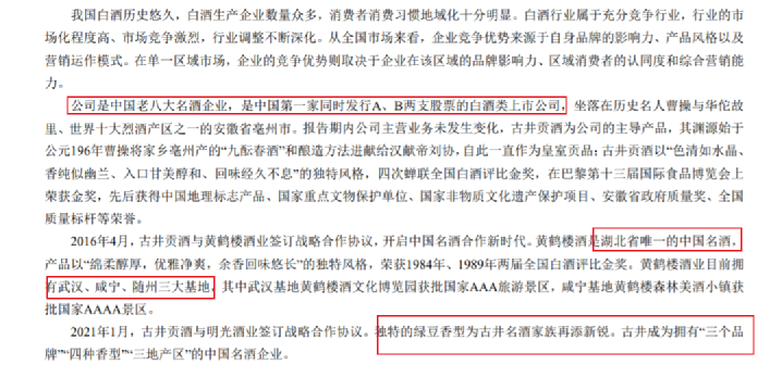公司是中国老八大名酒企业,是中国第一家同时发行A、B两支股票的白酒类上市公司,坐落在历史名人曹操与华佗故 里、世界十大烈酒产区之一的安徽省亳州市。