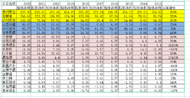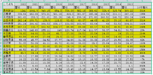 白酒行10年营收增长